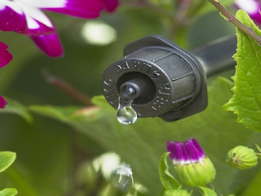 Ưu điểm: đầu vòi tưới nhỏ giọt dẫn nước đến chính xác nơi bạn muốn tưới cây mà không làm bắn tung tóe ra khu vực xung quanh => Tiết kiệm nước và giảm sự phát triển của cỏ dại mọc xung quanh gốc cây.