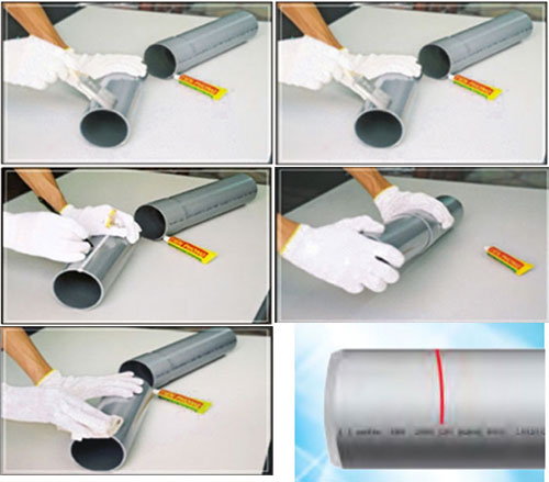 - Đánh dấu chiều dài cần ghép dán trên mặt trơn của ống nhựa. Đánh dấu này sẽ được sử dụng để kiểm tra trong quá trình lắp ghép.
