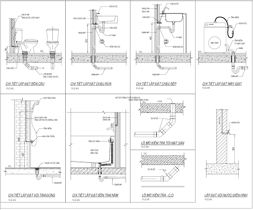 Đảm bảo chừa đủ các vị trí chờ thoát nước cho tất cả các thiết bị có nhu cầu thoát nước.